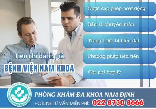 Phòng Khám Đa Khoa Nam Định (181 Song Hào, Trường Thi, Ninh Bình) tự hào sở hữu đầy đủ các tiêu chí trên, luôn hoạt động với mong muốn đem lại một môi trường thăm khám, chưa bệnh ngoại khoa chuyên nghiệp và thoải mái cho nam giới. Do đó phái mạnh có thể yên tâm lựa chọn khám chữa tại đây