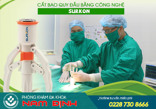 Hiện tại Phòng Khám Đa Khoa Nam Định đang ứng dụng kỹ thuật Stapler Surkon – kỹ thuật cắt bao quy đầu tiên tiến hiện nay. Surkon cắt và khâu bao quy đầu trong một lần, gọi là phương pháp dập ghim. Ưu điểm vượt trội của phương pháp Surkon là: