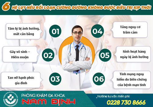 Theo phân tích từ chuyên gia ngoại khoa Phòng Khám Đa Khoa Nam Định, tỷ lệ nam giới mắc rối loạn cương dương ngày càng gia tăng. Do cuộc sống áp lực cao, thường xuyên căng thẳng, stress kéo dài hay thực hiện các lối sống, hành vi thiếu khoa học (uống nhiều rượu, bia, chất kích thích, thủ dâm,...) là một trong những nguyên nhân khiến cho người trẻ bị rối loạn cương dương.