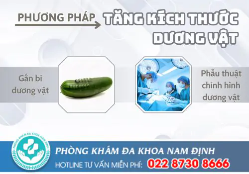 Nam giới có thể đến Phòng Khám Đa Khoa Nam Định (181 Song Hào, Trường Thi, Ninh Bình) để giúp hỗ trợ làm tăng kích thước dương vật. Hiện phòng khám đã và đang ứng dụng thành công một số biện pháp khắc phục tình trạng dương vật có kích thước khiêm tốn như: