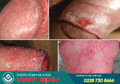 ✜ Xuất hiện mẩn đỏ, nổi mụn liti, hoặc các mụn lở loét hoặc chảy dịch ở bao quy đầu, rãnh quy đầu;