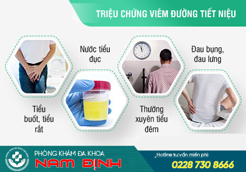 Viêm đường tiết niệu do vi khuẩn, nấm ngứa (đặc biệt là nấm Chlamydia và vi khuẩn E. Coli) xâm nhập và làm tổn thương niêm mạc niệu đạo, niệu quản, bàng quang, cầu thận, đài bể thận,… khiến cho bệnh nhân gặp phải các triệu chứng như sau: