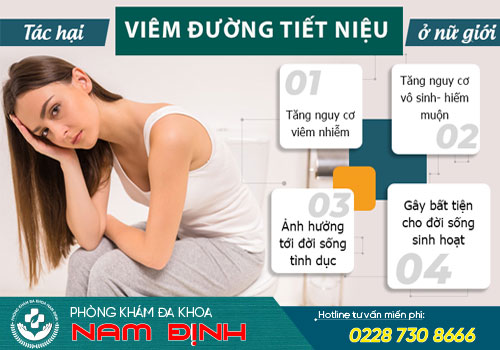 Trên đây là các thông tin cụ thể về viêm đường tiết niệu ở nữ. Mọi băn khoăn về vấn đề này, các bạn vui lòng nhấp chuột chọn [tư vấn trực tuyến] hoặc gọi đến số (0228) 730 8666 để được các bác sĩ tư vấn, giải đáp thắc mắc và đặt lịch hẹn khám sớm .
