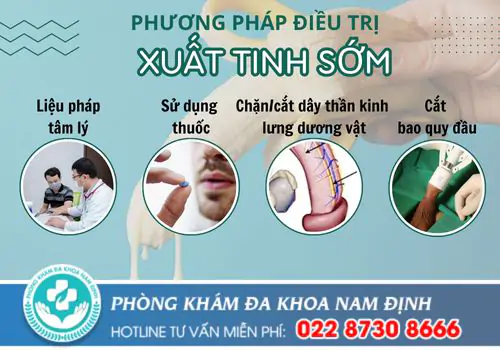 Phòng Khám Đa Khoa Nam Định là cơ sở y tế tiên phong trong ứng dụng các phương pháp hiện đại vào khám chữa bệnh. Với bệnh xuất tinh sớm, hiện nay phòng khám đang áp dụng các phương pháp sau: